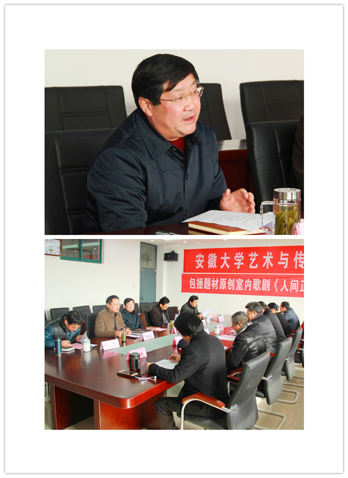 项目负责人孙来法教授就项目实施的必要性、可行性以及重点研讨内容作了全面的陈述,与会专家就作品的标题、形式、内容、音乐以及创作、排演中可能会遇见问题展开深入细致的讨论并取得了实质性进展。大家一致认为该项目的实施是安徽文艺界的大事件,必将对安徽省文化艺术大繁荣起到积极的推动作用,专家们表示,将按照项目实施进度全力以赴,为项目的顺利推进而共同努力。
