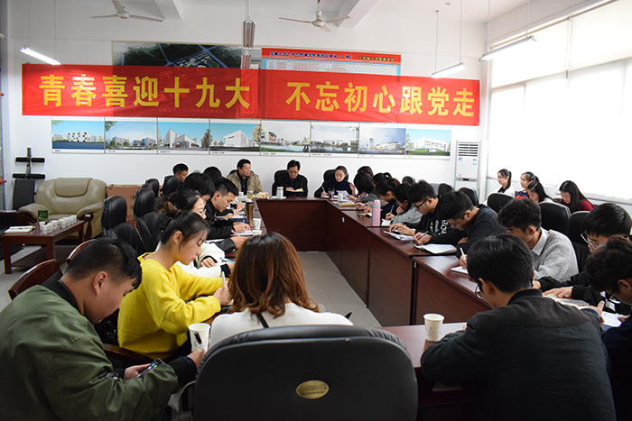 10月18日下午两点半,学院组织召开“青春喜迎十九大,不忘初心跟党走”党的十九大报告学习座谈会。会议由学工部、团委共同组织,党委副书记沈端良出席会议并讲话。会议由学工部副部长张志云主持。学生干部和学生党员代表40余人参加座谈会。