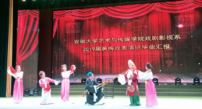 签约仪式结束后,双方与戏剧影视系师生共同观看了黄梅戏表演专业学生在丁玉兰庐剧院进行的期末汇报演出。