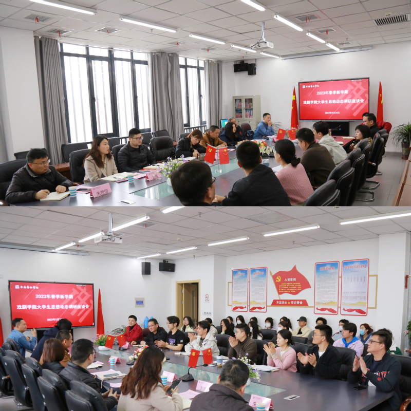 3月24日,2023年春季新学期戏剧学院大学生思想动态调研座谈会在戏剧楼320教室举行。会议由戏剧学院党总支副书记冯传胜主持。