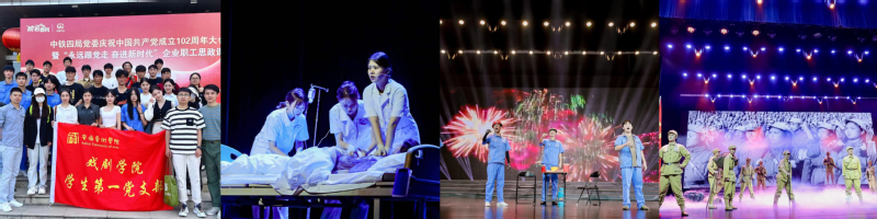 6月27日,戏剧学院第一学生党支部师生走进中铁四局助力企业职工艺术思政课——“永远跟党走,奋进新时代”,其中三部剧目《序》《致敬奋斗者》《年夜饭》均由支部党员创演。