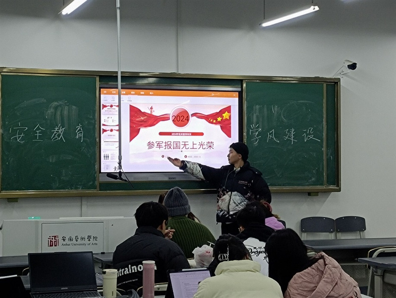 为促进大学生应征入伍,向部队输送更多优质兵员,12月11日至24日戏剧学院开展“青春有梦 强军有我”征兵政策宣讲系列主题班会。各毕业班辅导员、退伍复学学生代表及2024届全体毕业生参加了本次宣讲。