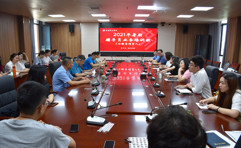 为贯彻落实学院党委“三全育人”工作的指导思想,发挥好“心理育人”的抓手作用,推动辅导员心理培训全覆盖工作,学生处心理健康教育与咨询中心于2021年7月9日组织开展了一次辅导员心理健康专项培训活动。培训活动的参与人员包括专兼职辅导员、系部负责学生管理的分管领导、学生处工作人员、学院分管领导等。