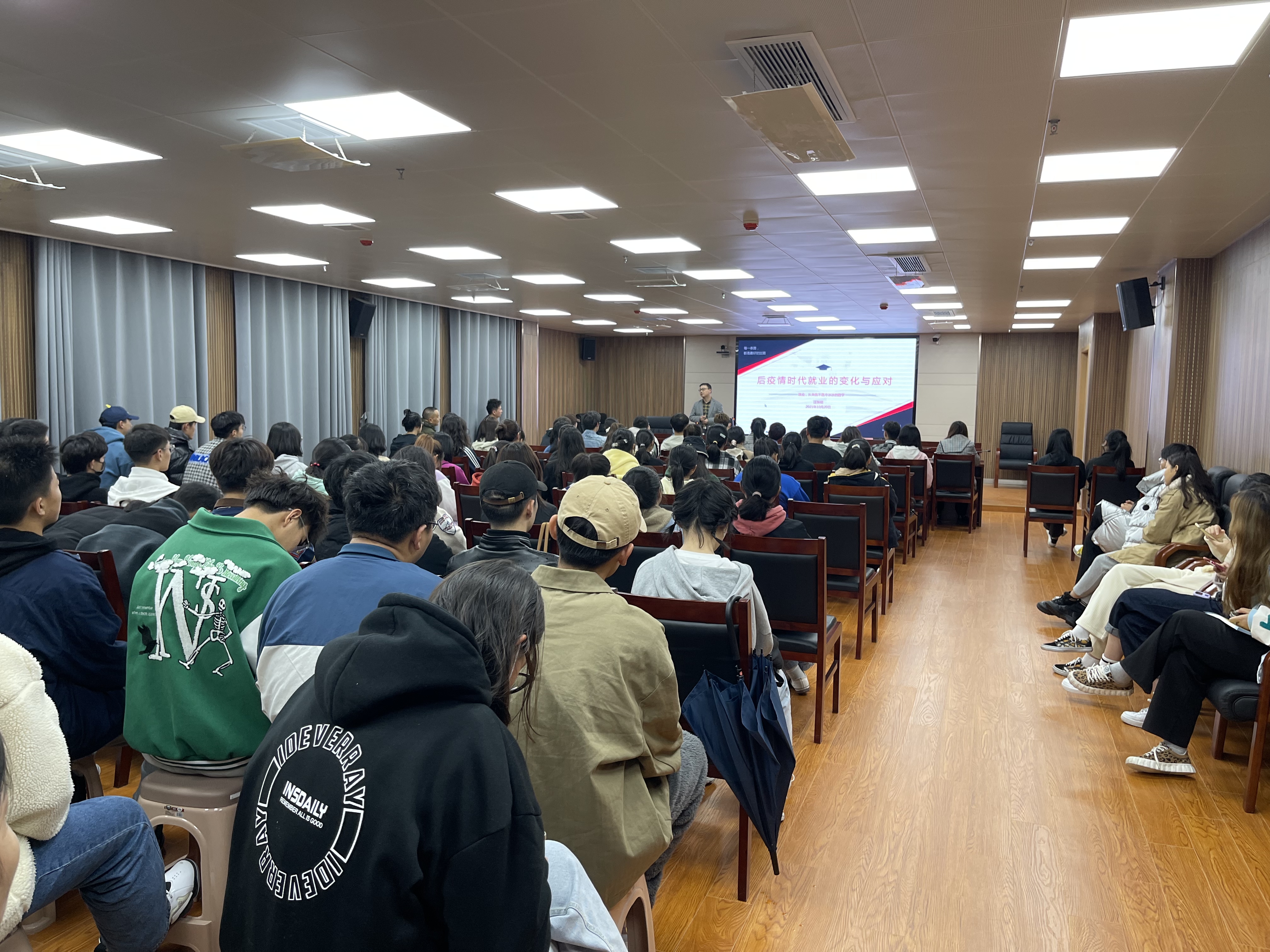 为贯彻落实《教育部关于做好2021届全国普通高校毕业生就业创业工作的通知》,帮助大学生有效进行人生定位,引导学生树立正确的就业观和成才观,激发大学生创新创业意识,2021年10月20日下午,学生处特邀资深人力资源服务专家,安徽省级“启明星”就业指导专家,安徽省级“筑梦”创业导师,安徽省大学生职业规划大赛暨创业大赛评审专家,乐动网官网就业创业导师专家库成员,一级企业人力资源管理师汪张明总经理,在综合楼717作了题为《后疫情时代就业的变化与应对》专题讲座。学院党务负责人沈端良,学生处就业指导中心工作人员,及各系师生一百余人到场聆听了讲座,讲座由学生处处长刘长华主持。