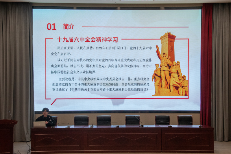 宣讲中,陈伟伟立足青年大学生发展需求,结合日常思想政治教育工作实际,通过多样的视角和生动的事例,围绕“党的百年奋斗重大成就和历史经验是什么”“为什么要总结党的百年奋斗重大成就和历史经验”“如何深刻领会‘两个确立’的决定性意义”以及“青年学子未来的选择”等专题,诠释了对党的十九届六中全会精神的理解和感悟,并鼓励学生们持续加强学习党的精神、党的历史。