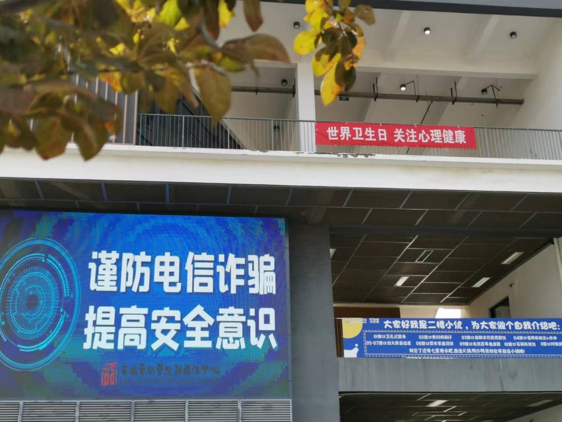 2022年10月10日是第31个精神卫生日,今年的主题是“营造良好环境,共助心理健康”。为了营造良好的育人环境,更好地帮助学生树立心理健康理念,提高心理健康意识,我校心理健康教育与咨询中心在大学生活动中心通过设计移动展架和悬挂横幅的方式进行了世界精神卫生知识的普及,旨在营造良好的心理健康环境。