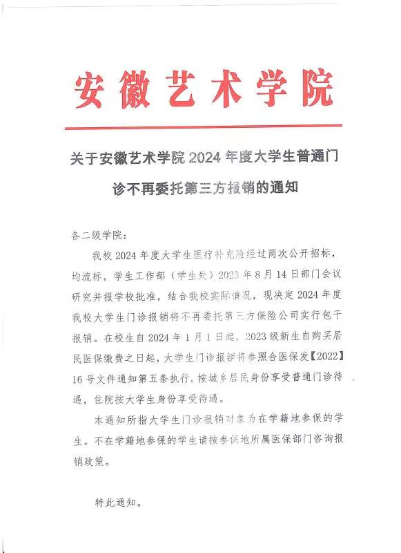 关于乐动网官网2024年度大学生普通门诊不再委托第三方报销的通知