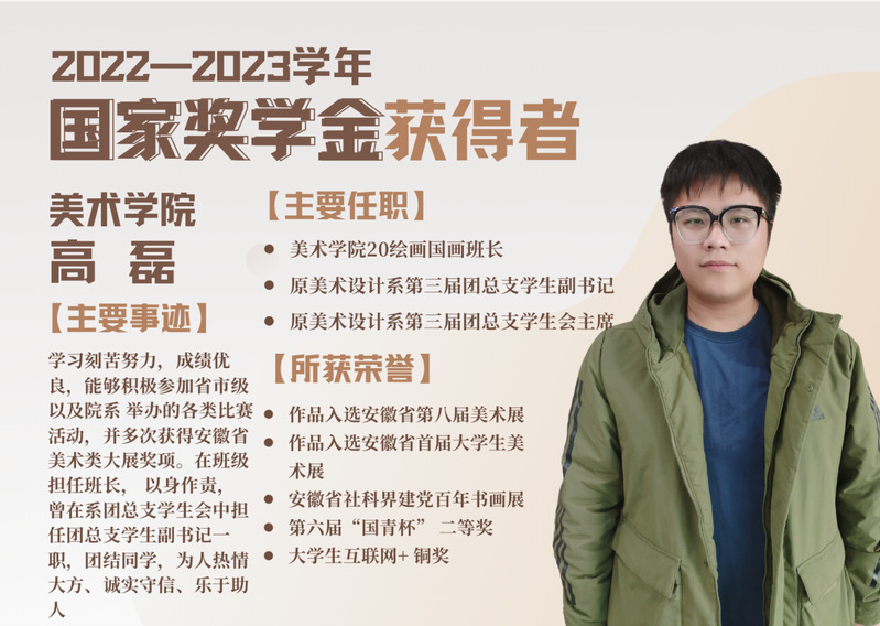2022-2023学年国家奖学金获得者风采展示|美术学院 高磊