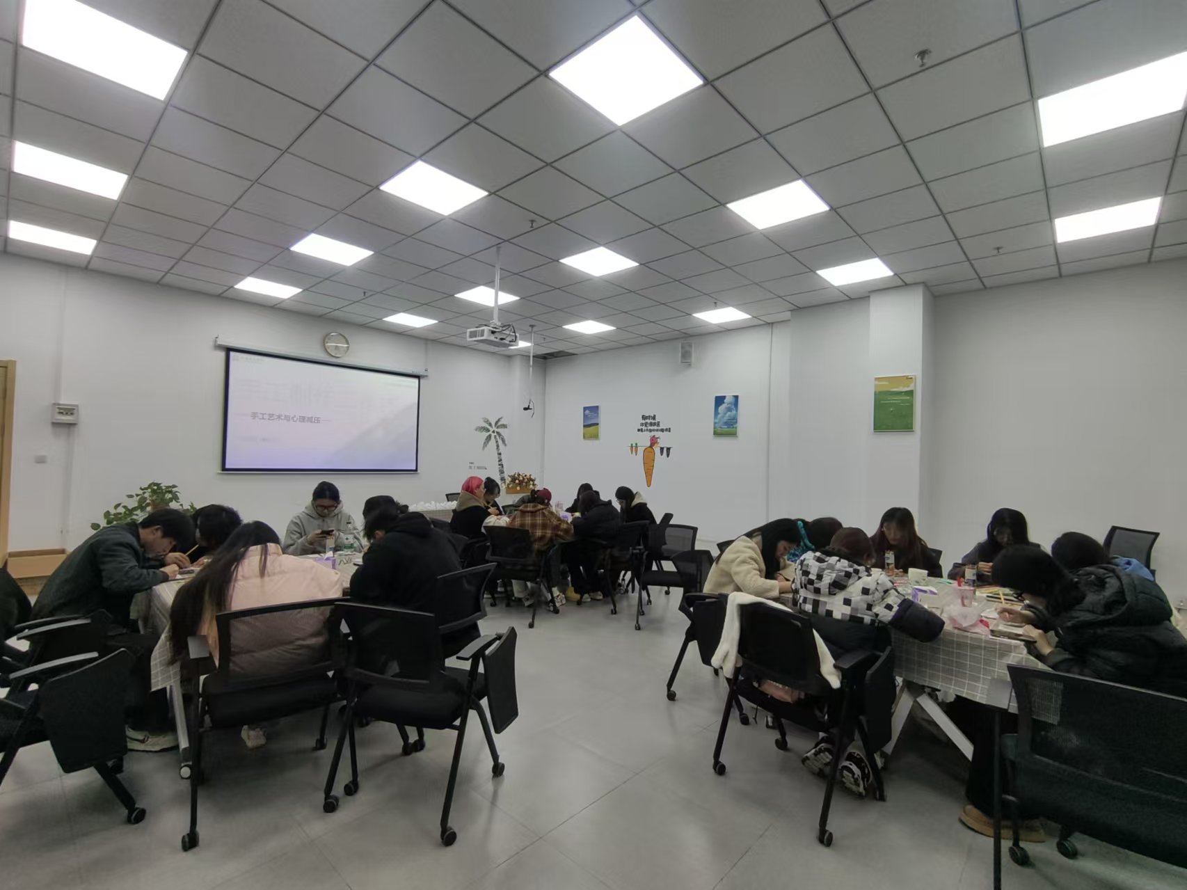 为常态化落实心理健康教育融入德育、智育、体育、美育、劳育的长效工作机制,2024 年 11 月21日,由大学生心理健康教育与咨询中心和美术学院心理辅导站联合举办的“以劳健心”艺术手工疗愈工作坊在大学生活动中心310团体活动室开展。