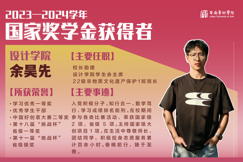 2023-2024学年国家奖学金获得者风采展示|设计学院 余昊先