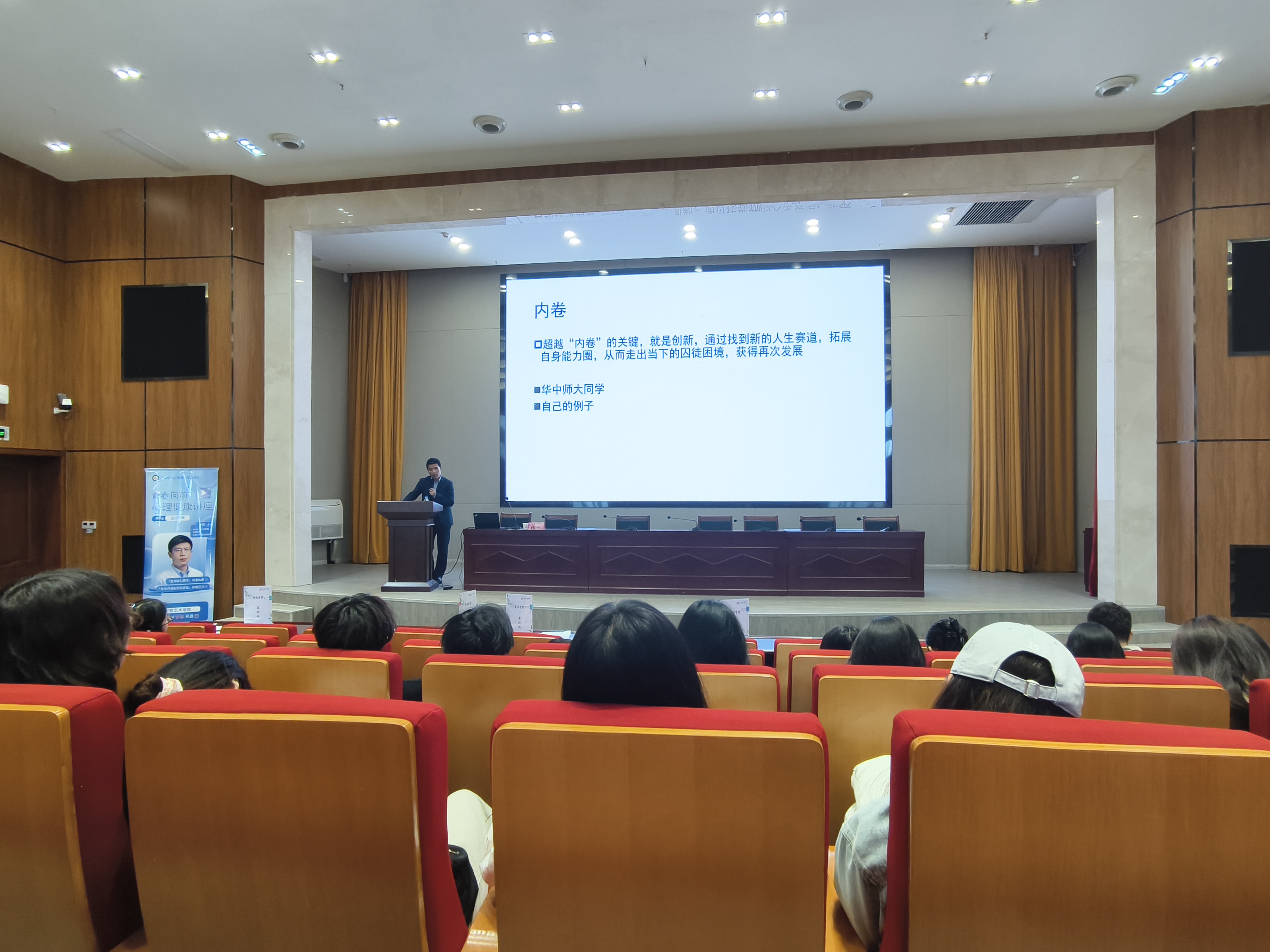 本次讲座围绕“内卷、精神内耗、emo、摆烂、躺平”等方面展开。在讲座过程中,张凯老师结合当前社会热点和青年人的实际困惑,深入浅出地分析了内卷、精神内耗、emo、摆烂、躺平等现象产生的根源和危害,让听众深刻理解长期处于这些状态中对个体身心健康及个人发展的危害。最后,张老师引导大家理性看待内卷和躺平,走出摆烂的怪圈,使他们意识到,要拒绝“内卷、精神内耗、emo、摆烂、躺平”这些现象需要从思维和行动上做出改变。