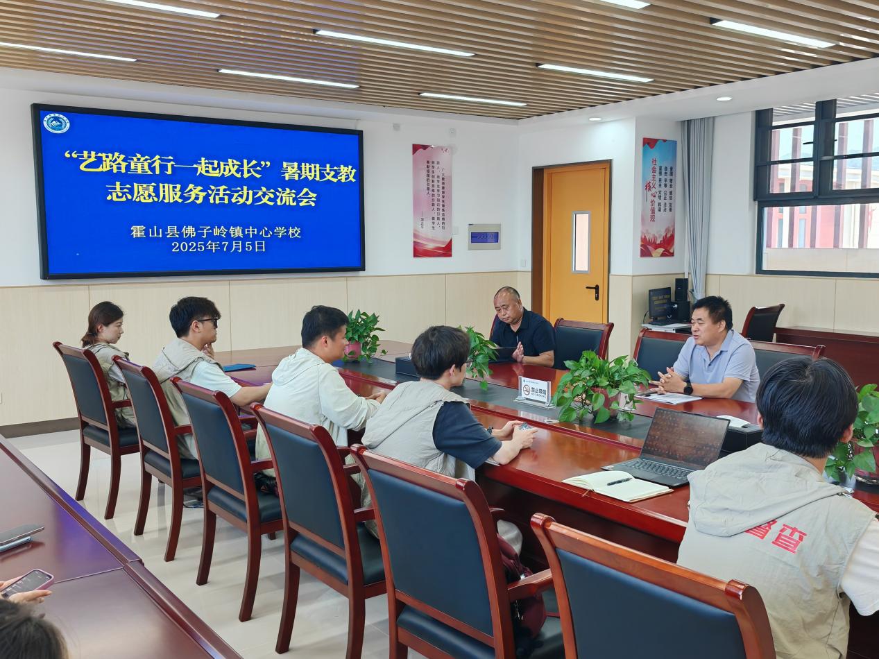 7 月 5 日,我校2025 年暑期志愿者赴六安市佛子岭镇中心学校支教活动如期开展,志愿者们将在此开展为期1个月时间的暑期支教工作,为当地学生带去包括播音主持艺术、美术、古筝、舞蹈在内的六门艺术课程以及体育拓展课程。