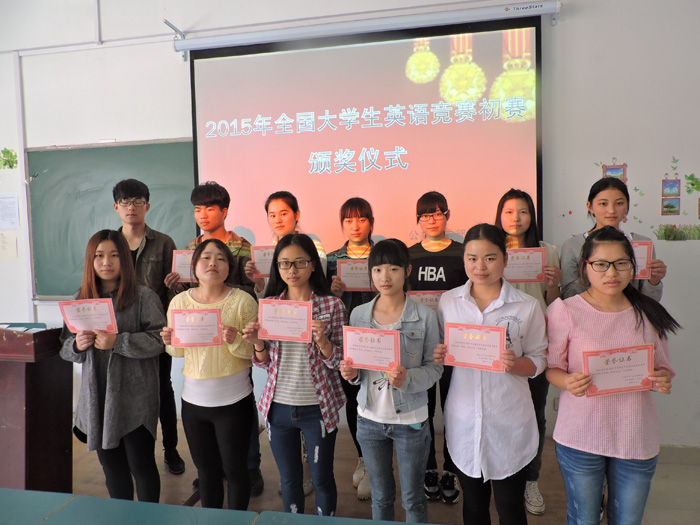 2015年5月6日下午14:30分,公共教学部和学生处在二教202教室举行2015年全国大学生英语竞赛初赛颁奖仪式。