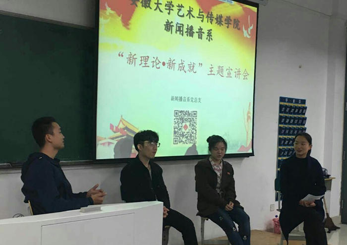 10月16日晚,新闻播音系党总支在2教406教室开展“新理论·新成就”主题宣讲会,用行动迎接党的十九大胜利召开。系党总支宣传委员刘涛,学生党支部副书记、宣传委员杜衎及我系16级全体学生参加宣讲会,学生党员王利元主持了本次活动。
