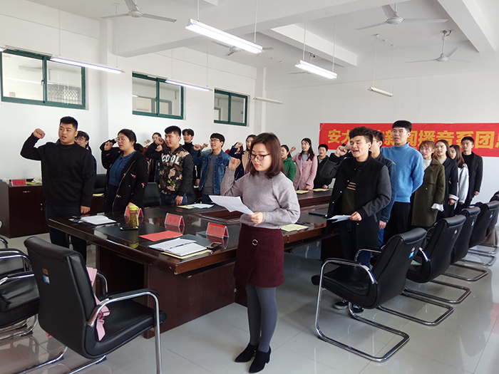 陈伟伟强调,广大团干要有使命感、有责任感;要善始善终,懂得感恩;要积极发挥团干在班级里的核心作用。她带领大家向团旗庄严宣誓。