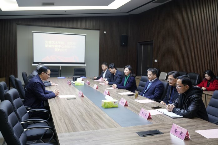 12月15日下午,我校与安庆市新闻传媒中心在播音主持楼五楼第一会议室签署产学研全方面合作协议。安庆市委宣传部副部长、市新闻传媒中心党委书记、主任朱学云,新闻传媒中心党委副书记、总编辑张亚锋,校党委委员、副院长柳友荣,党务负责人沈端良参加签约仪式。