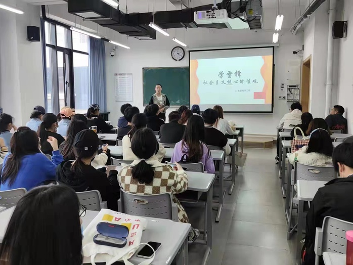 各班团支书精心准备PPT讲稿,为同学们叙述了雷锋同志的个人事迹。同学们在聆听中感受到了雷锋精神在不同时期的深刻内涵。“人的生命是有限的,可是为人民服务是无限的,我要把有限的生命投入到无限的为人民服务中去”。各班级团支部的同学们齐声朗读雷锋同志的名言,深感雷锋精神在不同领域里传递出的无穷力量。