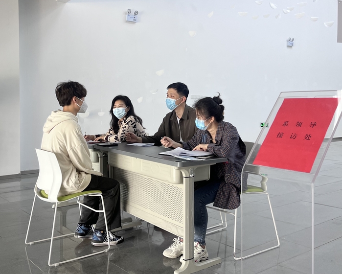 为进一步加强疫情防控期间与学生的联系,切实帮助学生解决实际问题,新闻播音系从4月19日开始开展接访工作,系党政领导蔡正兰、曹磊、尹广富轮流于每周二中午进行接访。
