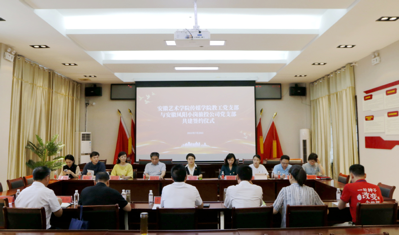 7月20日下午,传媒学院党总支教工党支部与滁州市小岗村旅游投资管理股份有限公司党支部共建协议签署仪式在小岗村党员活动室顺利举行。校党委副书记韩军、党委委员、副校长柳友荣,党委委员、宣传(统战)部部长王琍琍,凤阳县委常委、小岗村党委第一书记李锦柱同志等出席签约仪式,传媒学院党总支书记、院长蔡正兰主持了签约仪式。