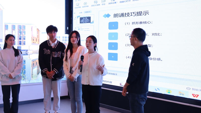 活动由姚俊主持,公开课授课教师为播音与主持艺术专业尹广富老师,他以《文艺作品演播》课程中的寓言故事《猴吃西瓜》为授课内容,打破传统的师讲生听的授课模式,以人才培养方案中的培养目标为导向,将采编播摄录制等相关内容融入教学,打破学科壁垒,极大地激发了学生的学习兴趣。