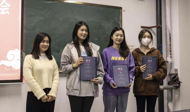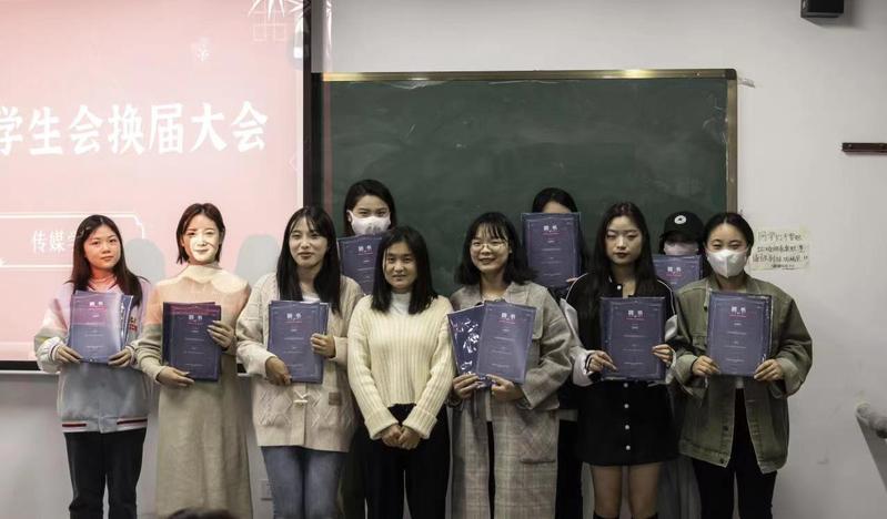 会议由传媒学院团总支学生会副主席宋泽主持,在总结了学生会去年的工作成果后,于博文、吕凤丽分别为获年度优秀个人的代表颁发证书,为上一届学生会的主席团及各部部长颁发聘书。
