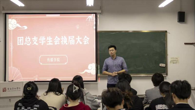 11月9日中午,传媒学院团总支学生会换届大会在播音楼410教室召开,团总支书记于博文、副书记吕凤丽参加了本次会议。