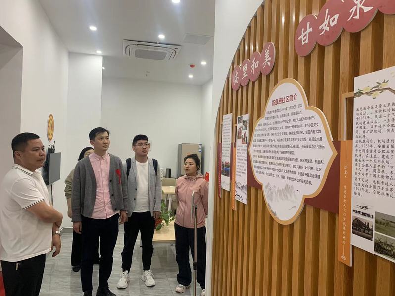 会上,临泉路社区书记徐洪恩介绍了临泉路社区的历史,表达了对传媒学院到社区开展志愿服务活动的欢迎,希望能通过菜单化与定制化相结合的方式,常态化开展社区志愿服务活动,期待有更深入的合作机会。曹磊一行在长淮街道人大工委主任林弟昌的带领下参观了社区的微剧场、读书室、活动室等。