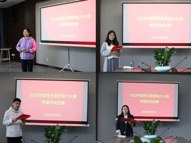为深入学习贯彻习近平新时代中国特色社会主义思想,进一步加强辅导员的理论素养与实践能力,不断促进辅导员队伍的专业化发展,传媒学院于5月9日在播音楼第一会议室举行2023年辅导员素质能力大赛初赛。学院党总支副书记曹磊、学生管理办公室主任陈伟伟出席,全体辅导员参加本次比赛。