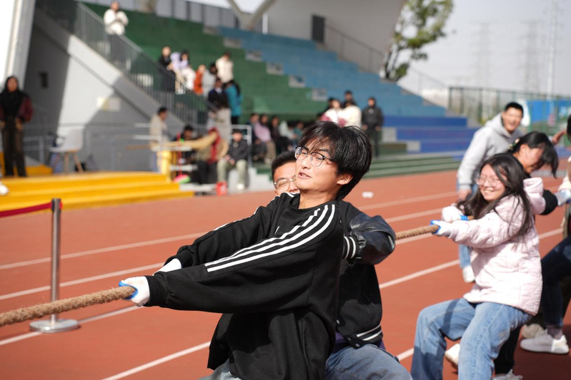 冬日暖阳下,队员们摩拳擦掌,斗志昂扬,统一压低重心,紧握麻绳。比赛中,队员们配合默契,用尽全力去拉动对手。各班啦啦队也拿出了百分之百的热情,在赛场形成一道亮丽的风景线。