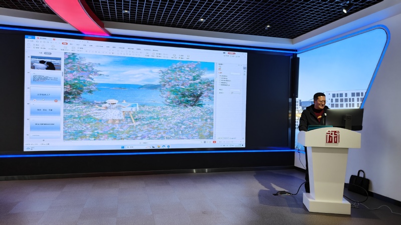 11月22日,滁州演艺集团党委副书记、总经理窦超在播音楼VR党建实训室作主题为“文艺与生活”专题讲座。传媒学院办公室主任马宏主持讲座。