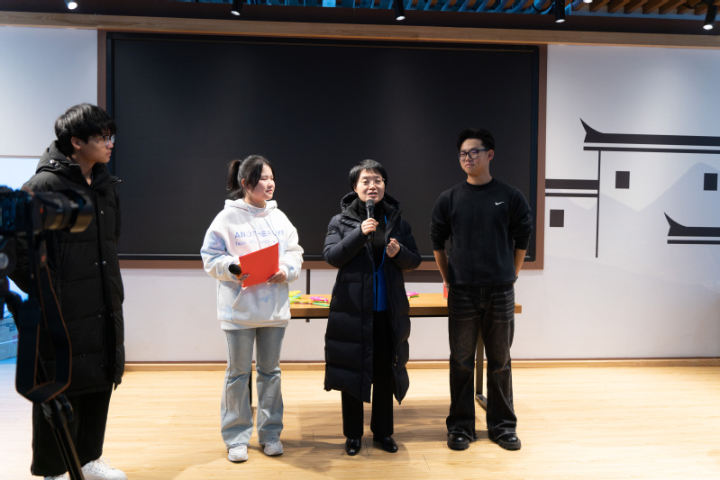 本次活动由23级播音与主持艺术专业的同学们自己策划,精心设计了丰富多彩的节目和趣味十足的小游戏。朱广亚同学现场提笔,为活动写下对联;陈启迪同学在现场雕刻“饺子印章”吸引众人前去观赏;柴依林同学现场朗诵了《减字木兰花·冬至》……现场气氛火热,好不热闹。