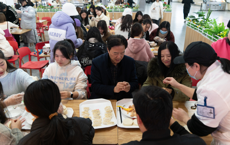 俗话说:“冬至不端饺子碗,冻掉耳朵没人管。”在联欢会现场,韩军和宣扬与同学们一起包起了饺子,在欢声笑语中感受冬至的热情。