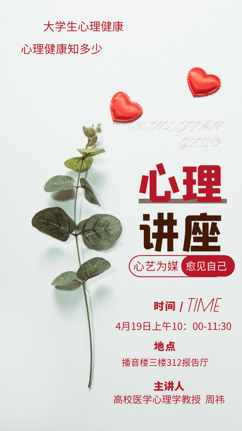 讲座通知 | “心艺为媒 愈见自己”——大学生心理健康知多少