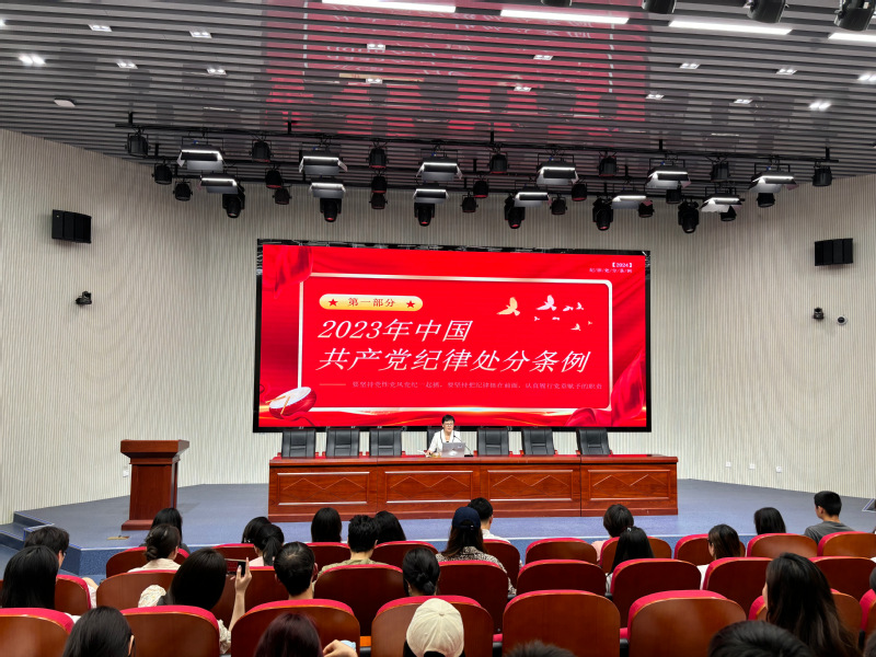 5月22日,传媒学院党总支书记蔡正兰在播音楼312报告厅讲授党纪学习教育专题党课,解读新修订的《中国共产党纪律处分条例》,学院全体党员,发展对象、入党积极分子参加。