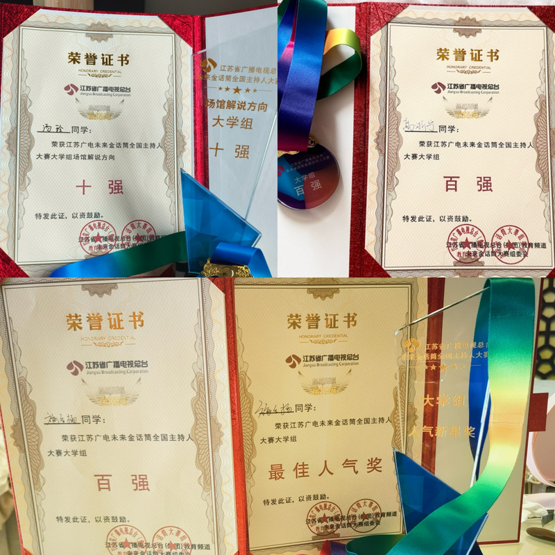 8月30日上午,2024第十届江苏广电“未来金话筒主持人大赛”在南京艺术学院黑匣子剧场圆满落幕。经过初赛,复赛,决赛层层考核,乐动网官网传媒学院三位学子分别在场馆解说和双语播音赛道脱颖而出,荣获佳绩。来自播音与主持艺术专业22播本二班的汤玲跻身全国十强,23播本二班高浙宁和22播本二班施名扬晋级全国百强。此外,施名扬还获得了大学组人气新星奖。