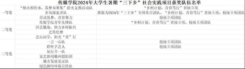 今年暑期传媒学院共有13支队伍开展“三下乡”社会实践活动,其中,“乡风探索者队”推报为2024年“三下乡”全国重点团队。在暑期“三下乡”活动中,我院学子始终以饱满的精神面貌争做有理想、敢担当、能吃苦、肯奋斗的新时代好青年,力争将专业所学为乡村振兴助力。(撰写:舒宝玉、嵇健 拍摄:袁良 编辑:陆璐 初核:张雷雷 审定:蔡正兰)