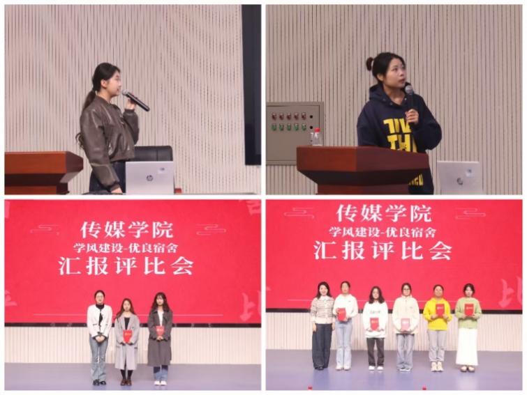 1021日,传媒学院团总支于播音楼312报告厅举办优良学风宿舍评比活动。教科研主任申莹和、学管办主任陈伟伟、团总支副书记刘欣慰出席。