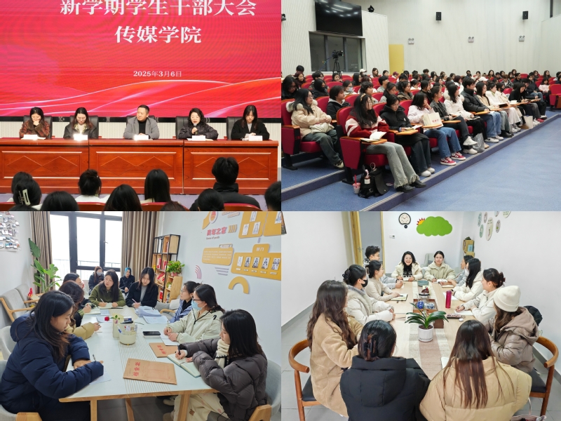 3月6日,传媒学院于播音楼312报告厅召开新学期学生干部大会。学院党总支副书记张雷雷学生管理办公室主任陈伟伟、团总支委员院学生干部共同参加会议。