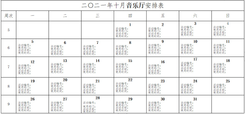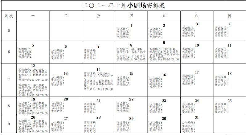 乐动网官网小剧场、音乐厅10月使用情况(随时更新)