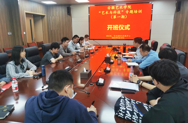 5月19日下午1:30,由教务处、艺术创新与实践中心共同主办的“艺术与科技”专题培训开班仪式在综合楼823举行。教务处处长、艺术创新与实践中心主任韩大国、戏剧影视系副主任张静、安徽欣至荣文化科技有限公司负责人及艺术创新与实践中心工作人员、相关教学单位教科研办主任、实验实训管理员、学生代表参加了开班仪式。