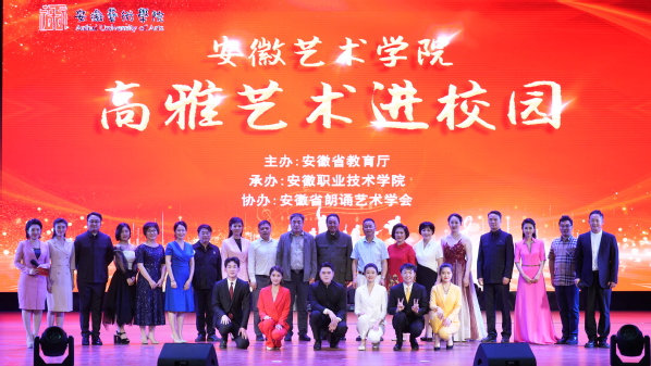 5月23日下午,2023年“高雅艺术进校园”首场演出——“朗诵艺术进校园”走进安徽职业技术学院。党委委员、副校长柳友荣,安徽职业技术学院党委书记李方泽及党委委员、副院长宣岩松出席活动。
