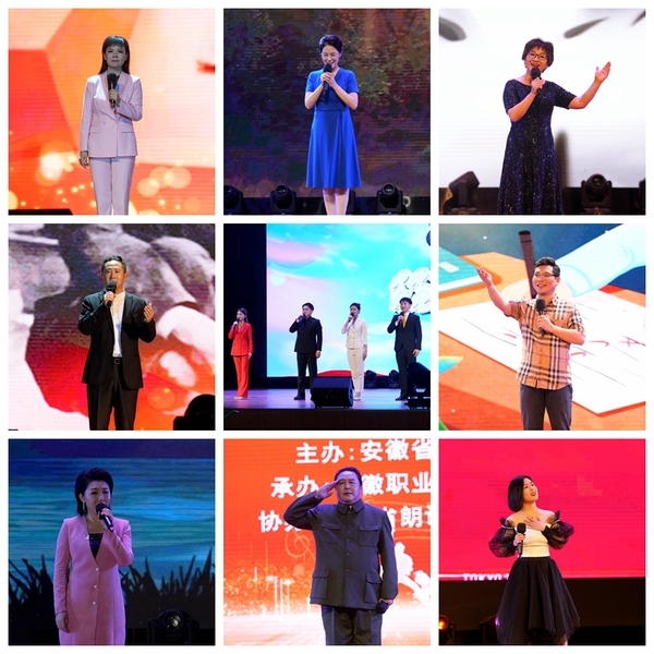 传媒学院党总支书记、院长蔡正兰带领专业教师与学生参加演出,展现出扎实的朗诵功底和对语言艺术的执着热爱。音乐学院教师谢潘婕、刘晓童、宁艺轩用歌声为现场活动增色添彩。安徽省朗诵艺术学会徐北雄、安妮、姚静云等朗诵艺术家演绎经典朗诵作品,用饱满的情绪、抑扬顿挫的语调展现朗诵艺术的魅力。