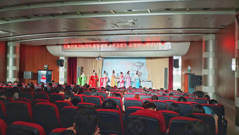 5月27日下午,我校戏剧学院青春实验剧团孵化传统戏曲复排项目黄梅戏青春版《天仙配》在蚌埠医科大学学术报告厅演出,现场200余名师生观看了演出。这次演出由乐动网官网和蚌埠医科大学联合主办,是我校优质文艺创作作品走出校园、扩大交流、服务社会的重要活动.