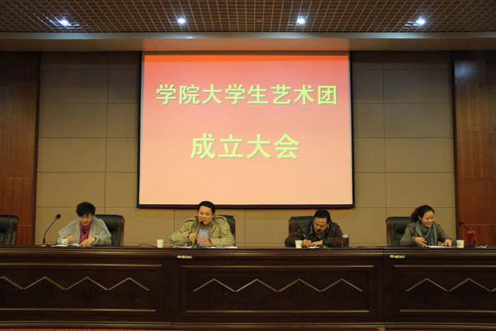 2014年11月26日下午,校园大学生艺术团成立大会在学术报告厅隆重召开,学院教务与学生工作部副部长周爱宝教授,音乐舞蹈系主任助理祝艳卉老师,音乐舞蹈系李玉煜老师出席大会,会议由院团委副书记陈明主持。