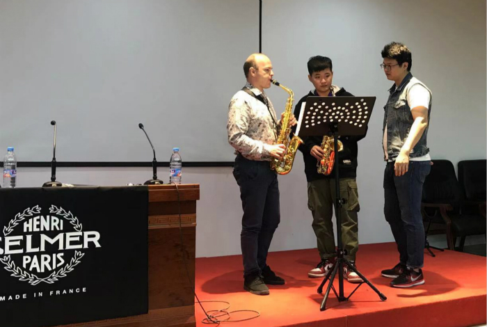 2018年10月29日,世界顶尖萨克斯管演奏家Vincent David来我院举办大师课和独奏音乐会活动,学院党委书记、院长周之虎,副院长张晶及有关部门负责人出席活动。