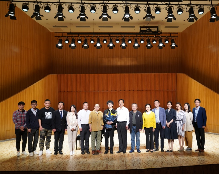 5月21日晚,我校青年教师、旅美青年钢琴家侯艺翔钢琴独奏暨“春之声”音乐会在音乐南楼音乐厅举行。校党委书记周明洁,党委副书记、院长樊嘉禄,省文联副主席、音协会主席盘龙,省音协副主席、秘书长徐海燕,省音协副主席、合肥师范学院音乐学院院长罗可曼等领导、嘉宾与师生一起观看了音乐会。
