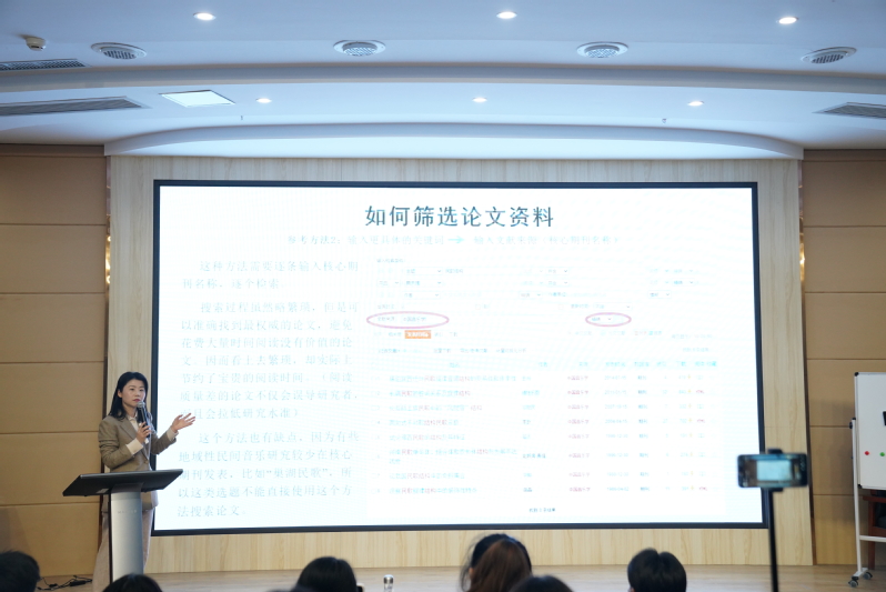 2022届毕业生毕业论文系列专题讲座(上)分别为毕业生安排了由潘捷老师主讲的《音乐类本科论文的类型及对应写作技巧》和李晓婷老师主讲的《文献综述与开题报告撰写的方法》两场讲座。讲座由系教学与科研办公室主任张中灿主持,2022届全体毕业生参加。