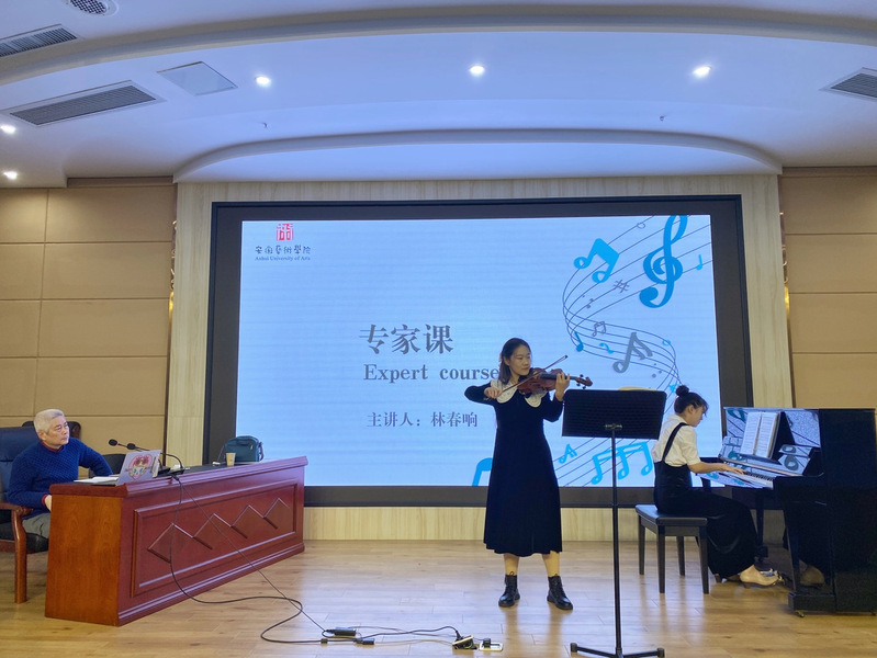 本次讲座及专家课让同学们深入了解小提琴早期的发展和意大利学派知识,在演奏技法上对干净有穿透力的发音,具有爆发力的运弓,和对乐曲风格的掌握有了更深刻的学习。以发展学生的创造性思维为重点,激发学生学习兴趣,注重学生对音乐的感受能力和表现能力,培养学生形成良好的人文素养,为学生学习音乐、诠释音乐、享受音乐奠定良好的基础。音乐学院管弦教研室全体弦乐老师参加上述活动。近几年,管弦教研室在师资队伍建设、学科专业发展、艺术实践等领域取得显著进步,引进了旅美、旅加青年小提琴加拿大蒙特利尔大学小提琴演奏博士孙欢欢等高层次人才,老师们受邀参加省内外各项重要演出,培养了一大批活跃在各条文艺战线上的演奏人才。
