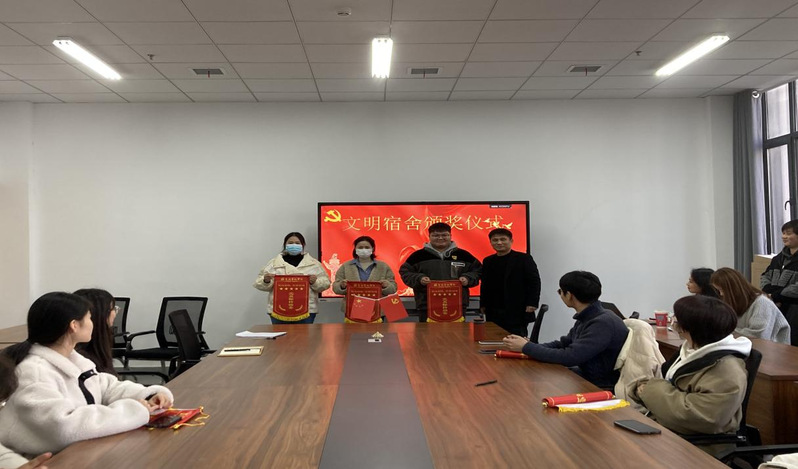 12月6日下午,音乐学院在南楼104成功举办文明宿舍颁奖仪式。音乐学院党总支副书记李传兴、学生处和学生管理办公室相关老师参加颁奖仪式,并为获奖同学颁发荣誉锦旗。