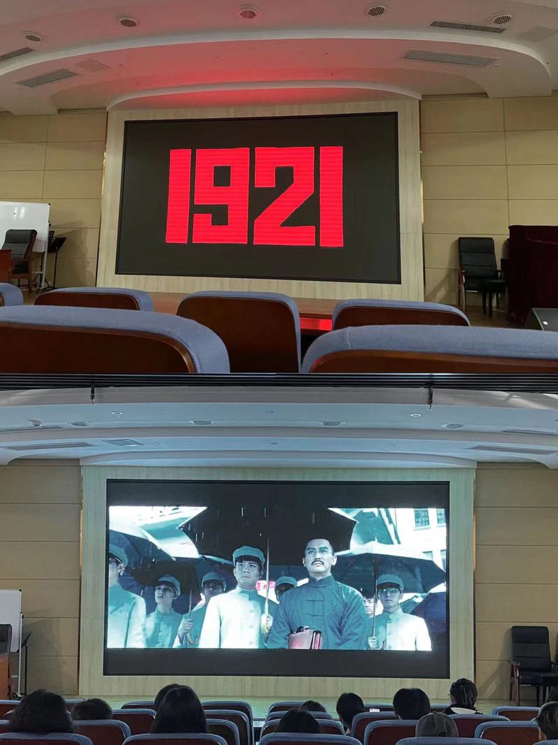 为深入学习贯彻习近平新时代中国特色社会主义思想,进一步提升党员的荣誉感,激发同学们的爱国情怀,5月24日中午,音乐学院第一学生党支部在音乐南楼报告厅开展主题党日活动,组织全体党员和入党积极分子观看红色电影《1921》。